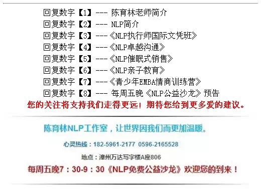 2014年创立全国首家个人身心语言学工作室 "陈育林NLP工作室",致力国内神经语学传播;2015年创办"福建NLP大学"。